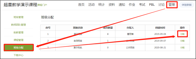 当有多个教师使用该课程的时候,可以把对应的班级分配给对应的教师,防止管理混乱。分配班级后,教师只能查看公共班级和分配给自己的班级。