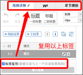 因每个小节都是独立的,老师设置好一个小节的标签之后,勾选标签复用,新建目录会与上一目录标签相同。