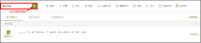 切换到对应的班级,点击要发布的活动类型进行设置。可以立即发布,也可以提前设置进入未开始的活动列表中。