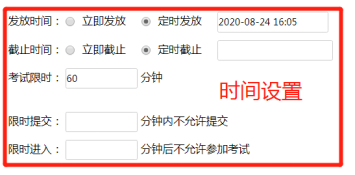 2)时间设置:试卷支持【立即发放】和【定时发放】,建议老师提前一天发放定时试卷,以免临近考试,因操作不熟练或者网络等其他问题,延误考试发放。
