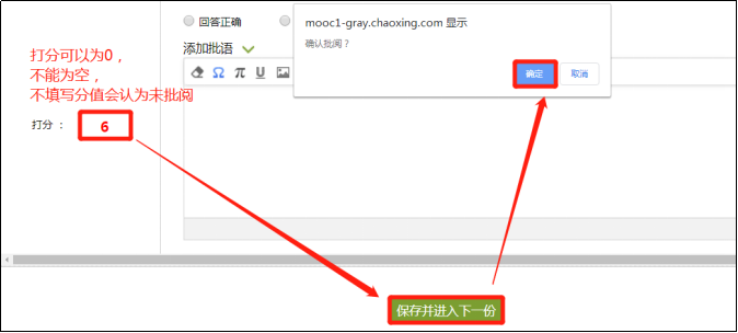 点击学生后面的【批阅】,即可进入批阅界面。输入分值,评语,点击【保存】或者点击【保存进入下一份】,即为批阅完成。如果需要修改批阅内容,点击【查看】。