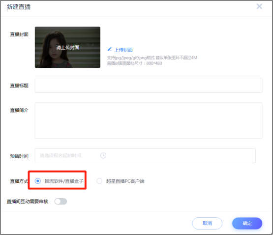 2. 点击左侧“个人直播间”,点击“新建直播”,选择“推流软件/直播盒子”,设置直播时间。