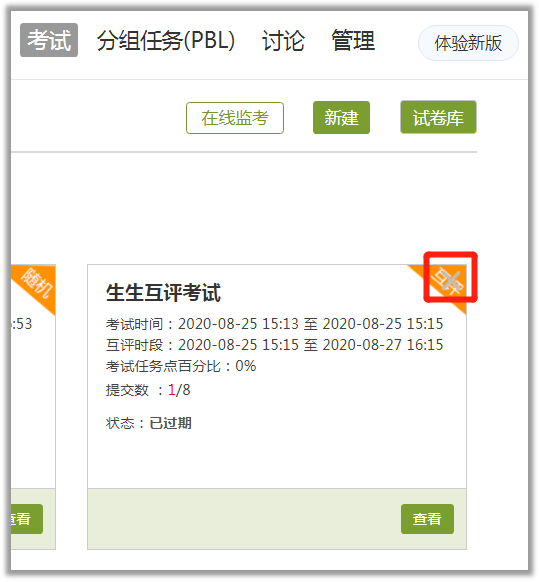 点进入【考试】模块,鼠标移动到对应考试的右上角,会出现“X”删除按钮,点击删除即可。