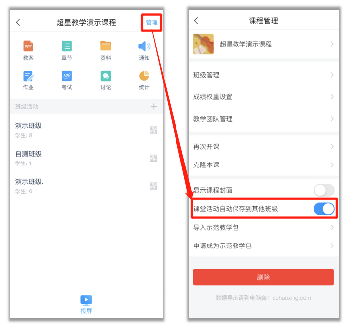 若有多个班级使用同一个活动内容,老师可以开启课堂互动同步功能。在一个班级设置活动之后,其他的班级中会同步生成一个未开始的活动。
