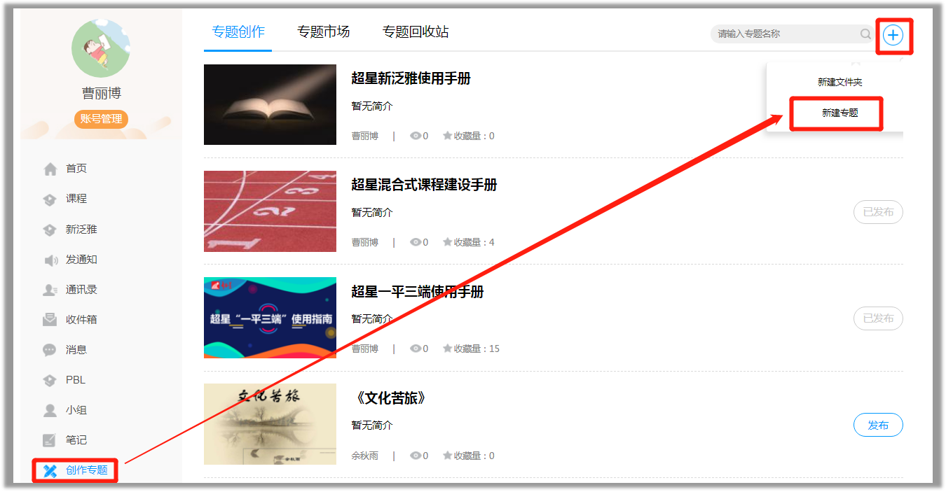 【1】新建专题(如果已经有准备好的专题请忽略此步骤,直接看【2】)