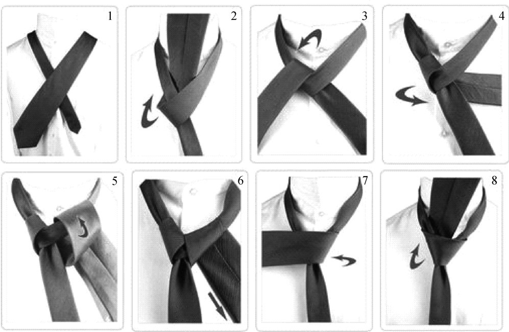 3. 打好领带。 在比较正式的社交场合, 穿西装应系好领带。 领带有简易打法和复杂打法之分。 领带的长度要适当, 以达到皮带扣处为宜。 如果穿毛衣或毛背心, 应将领带下部放在毛衣领口内。 系领带时, 衬衣的第一个纽扣要扣好, 如果佩戴领带夹, 一般应在衬衣的第四和第五个纽扣之间。