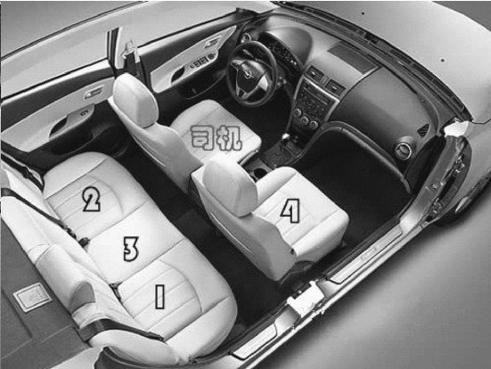 (2) 由专职司机驾驶轿车。 ①双排5座轿车上其他的4个座位的座次, 由尊而卑依次应为: 后排右座, 后排左座, 后排中座, 副驾驶座。 ②3排7座轿车上其他的6个座位的座次, 由尊而卑依次应为: 后排右座, 后排左座, 后排中座, 中排右座, 中排左座, 副驾驶座。 ③3排9座轿车上其他的8个座位的座次, 由尊而卑依次应为 (假定驾驶座居左): 中排右座, 中排中座, 中排左座, 后排右座, 后排中座, 后排左座, 前排右座, 前排中座。