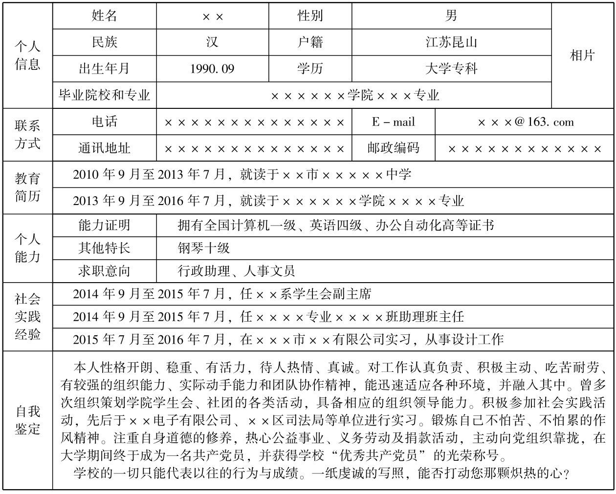 (2) 自评性。 简历就是简要、 简洁地介绍个人的学习经历等相关情况。 任何编造都可能给求职或应聘目的。