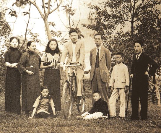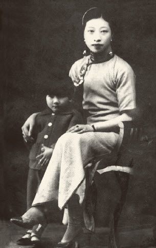 照片里女主人的旗袍袖及肘,领又趋高,三粒扣,长及地,低开衩,30年代的典型样式;男孩的西装、短裤、长袜、皮鞋,是都市殷实家庭的时尚打扮。
