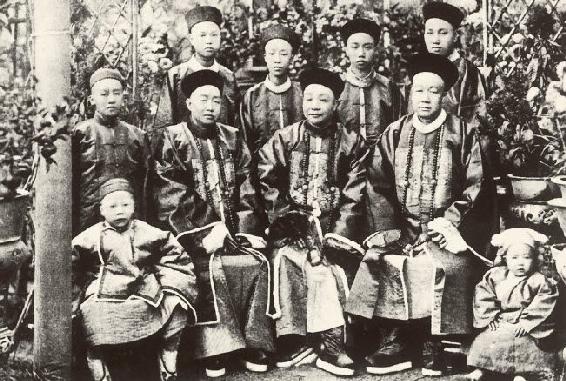 身着冬季补服的清末官员,看得出他们为拍照而精心穿戴了全套行头。