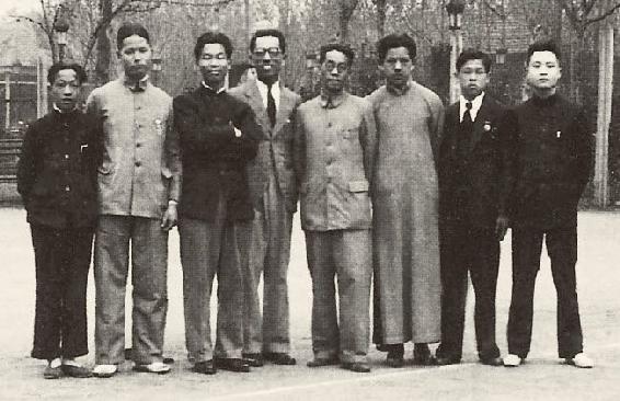 上海男士们的日常穿着,除了西装、长衫外,还有人穿的是1929年民国政府《服制条例》里规定的男公务员制服,其形制与中山装形似。(生活书店旧影)