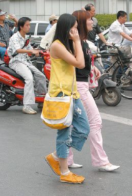 ……在这样的季节,人就乱穿衣了。很少有同样装束的女性,拎包各异,发型多样。学生模样的年轻人,上着T恤,下穿牛仔,多用双肩包,挂在身后,比较精神。这双肩包和背带裙代表年轻,稍稍年长几岁的,就不敢擅用了。个别要显得与众不同者,将带子拖得老长,走一路晃一路的,小小的落拓或嬉皮。她们一般没有首饰,或仅限于在胸前挂个好玩但不值钱的东西,木头的,石头的,或是手腕上挂个木石镯子。街头最多的是青春期后的女士。她们要么挽着男士的臂膀,要么挽着女伴的手。她们多少化了些妆,服饰比较得体,花样最多。从裙到裤,从T恤到衬衫西装,没有不能穿的,还有无跟的凉鞋。常常有人在外面罩个精致的背心,样式也不雷同。没看到旗袍,也没看到露出的肚脐。较多的女性剃一个男头,发根短短,含蓄地张扬着……(6)