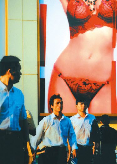女内衣广告的张扬,也许昭示着开放的深入。马克·亨利摄