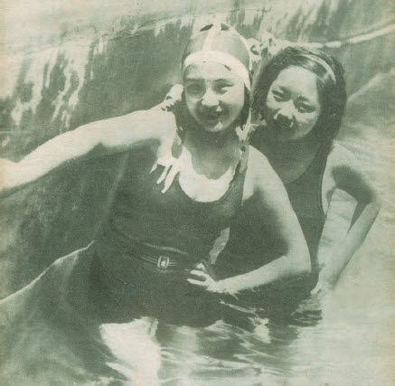 1914年上海基督教青年会修建了第一个泳池,但泳者甚少,直到30年代游泳渐兴。1931年上海成立中国女子游泳研究会,当时女子游泳穿的与男子一样,是贴身背心和平脚短裤。虽说是体育运动,但是,发生在当时的中国绝对是一件了不得的大事,更何况还是裸露大部分身体的女性。林语堂一语点破: