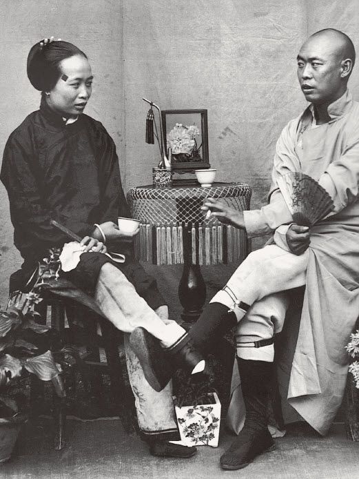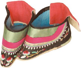 汉女子穿三寸金莲,绣花精致秀丽,但女性受尽缠足之苦。作者收藏