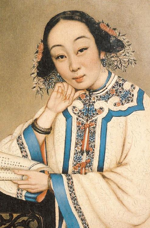 清佚名画家所作妇女画像精细地刻画了女装的繁缛装饰。中国美术学院藏