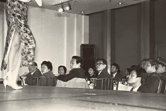 在当时特定的环境下,时装表演的性质到底是姓“社”还是姓“资”,自然免不了会有一番争论。这次时装表演,主办者专门请广州党政军的领导前来观摩。从照片上看,人们可以发现当时坐在前排看时装表演的表情都十分严肃,甚至有点紧张。(14)