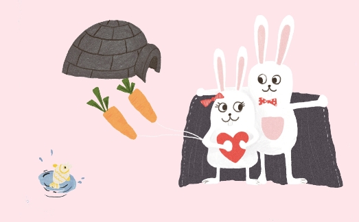 兔子先生带着兔子小姐跋山涉水来到北极。