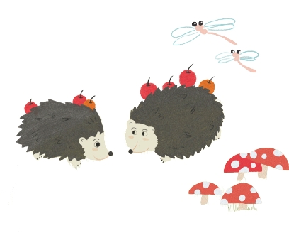 大树下面,刺猬先生一边小心翼翼地将背上的果子取下来,擦干净,送到刺猬小姐嘴边,一边逗趣地讲着笑话。