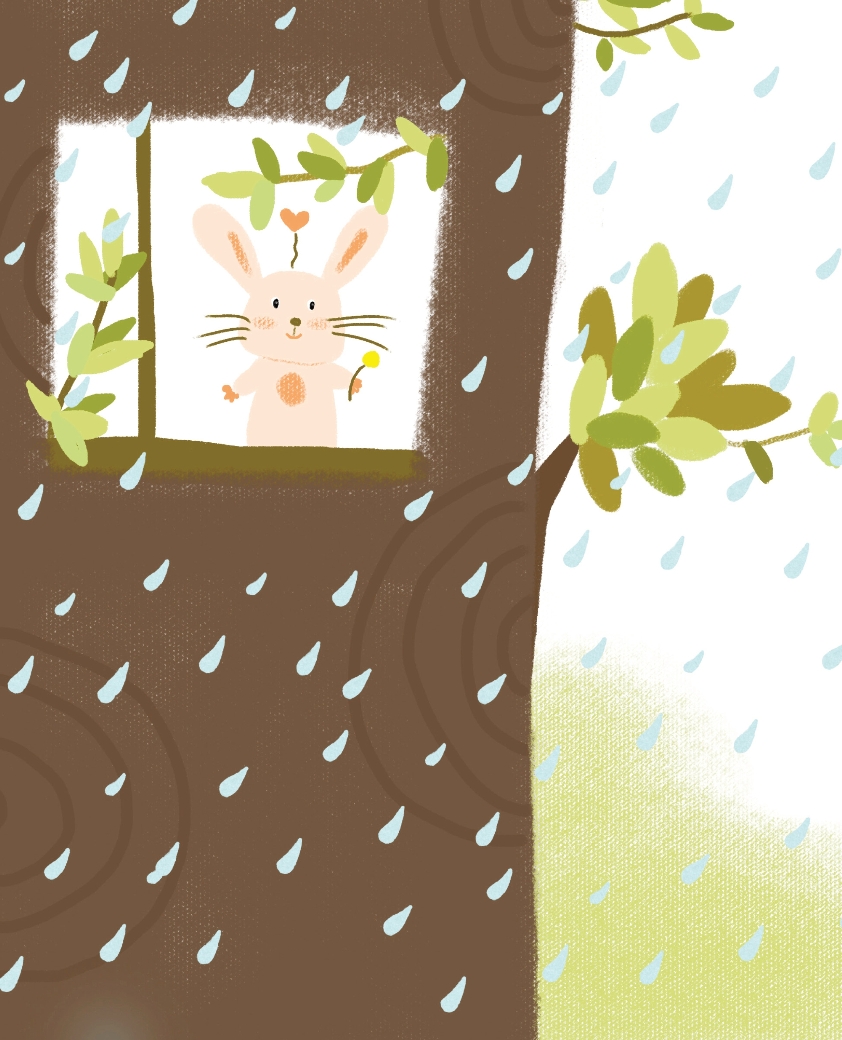 夜半醒来,兔小姐听见外面落大雨的声音。