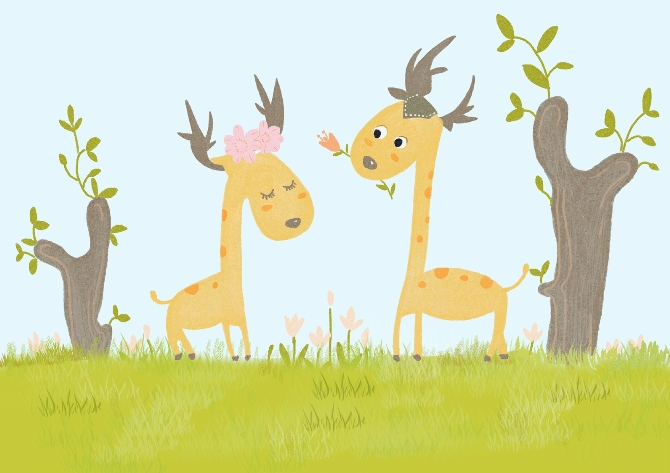 麋鹿先生用头上的犄角轻轻蹭了蹭麋鹿小姐,“我沉默,是因为,你说话的时候,嘴角带笑,眼里有光,脑袋一晃一晃的,可爱至极。我怕我的任何话语都会打破这美好的画面,除了静静欣赏,我好像没有别的选择。”