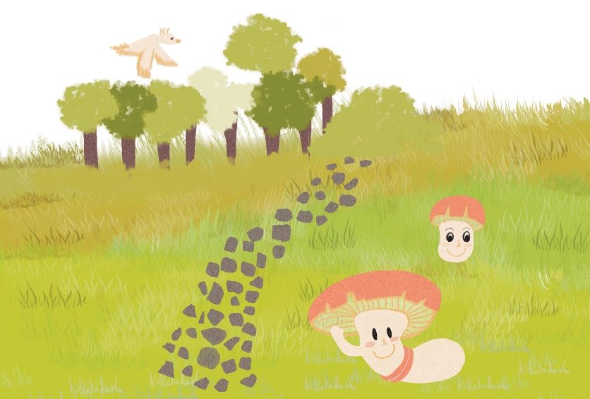 “总有一天你会看不见我。”香菇妈妈顿了顿,指着前方说:“但你还是要坚定快乐地,向前看哦。”