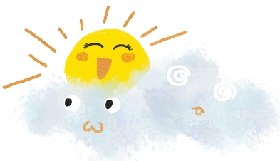 小乌云在天际悠闲地飘荡,一会儿在太阳君身边蹭来蹭去,惹得太阳君鼻头痒痒;一会儿挂在彩虹上发发呆、荡荡秋千。