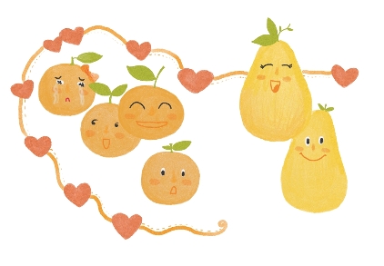 难过得快哭的橘子小姐跑去找木瓜小姐。