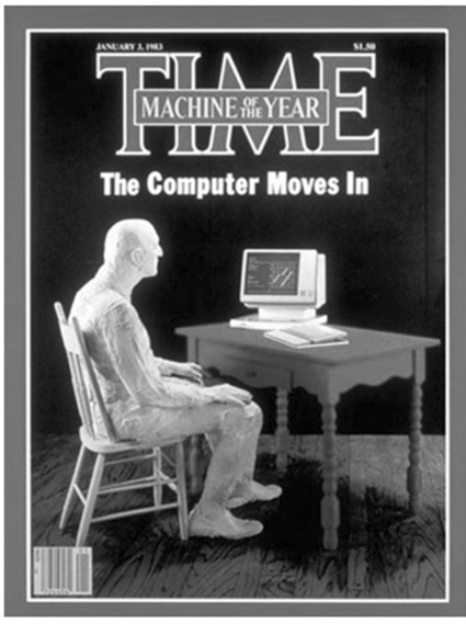 1983年1月3日出版的《时代周刊》(见图1.1)中,为上年度当选的“风云人物”撰文中这样写道:“在这一年里,这是最具影响力的新闻,它代表着一种进程,一种被全社会广泛接受并带来巨大变革的进程,这就是为什么《时代周刊》在风云激荡的当今世界中选择这么一位‘人物’,但它不是一个人,而是一台机器——计算机。 因此,《时代周刊》将计算机选定为1982年的年度‘人物’。”