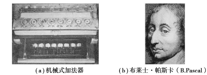 1642年法国数学家布莱士·帕斯卡设计并制作了一台能自动进位的加减法计算装置(见图1.5),被称为是世界上第一台数字计算器,为以后的计算机设计提供了基本原理。