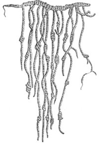 结绳记事(见图1.2)是文字发明前,人们所使用的一种记事方法。 即在一条绳子上打结,用以记事。 上古时期的中国及秘鲁印第安人皆有此习惯,即使到近代,一些没有文字的民族,仍然采用结绳记事来传播信息。