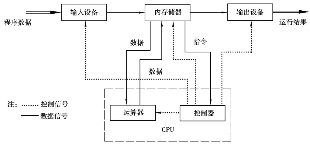 冯·诺依曼提出的计算机“存储程序”工作原理决定了计算机硬件系统由5大部分组成:运算器、控制器、存储器、输入设备和输出设备,如图3.3所示。