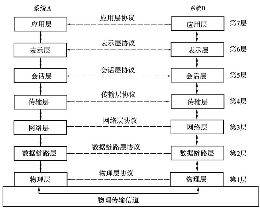20世纪70年代中期,计算机网络的研究和设计进入了一个新的阶段,为了创建一个国际通用的计算机网络体系结构标准,国际标准化组织ISO于1983年提出了开放系统互联(open systeminterconnection)参考模型,即OSI标准。 此标准将网络分为7层,即物理层、数据链路层、网络层、传输层、会话层、表示层和应用层。 如图5.5所示为OSI/RM模型。