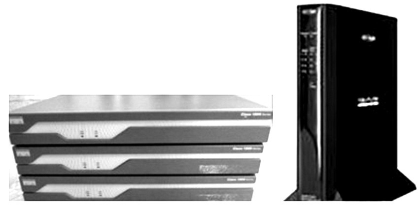 交换机(见图5.11)是一种将两个局域网连接起来并按MAC地址转发帧的设备,工作在数据链路层。 交换机可以完成更大范围局域网的互联,扩大网络地理范围,并且可以互联不同类型的局域网。 当交换机接到数据帧时,它将检测信息包的源地址和目的地址,如果数据帧不在同一个网段上,则转发该数据帧到另一个网段,如果在同一个网段上,则不转发该数据帧。当某个网段出现故障时,交换机可以将故障限制在此网段,从而最低限度地降低故障所带来的影响。 因此交换机对帧有检测和过滤功能,能隔离错误,可以实现过滤通信量、减少不必要的信息传递和增大吞吐量等功能,从而提高网络性能;通过对于交换机的配置还可以设置虚拟局域网(VLAN),将不同物理位置的计算机设为同一局域网。