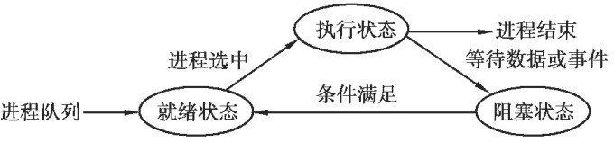 如图7.7所示,进程有3种基本状态:就绪、执行和阻塞。