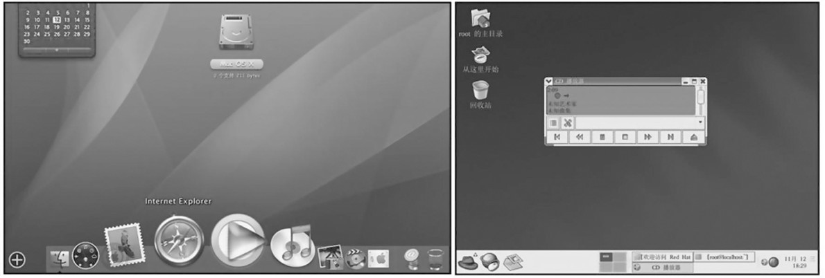 图7.2 苹果计算机Mac OSX操作系统和Linux操作系统桌面