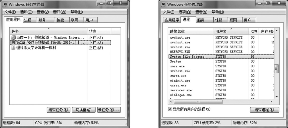 ②并发性。 在操作系统中,同时有多个进程在活动。 进程的并发性提高了计算机系统资源的利用率。 例如,一个程序能同时与多个进程有关联。 如图7.6所示,用IE浏览器程序打开多个网页时,只有一个IE浏览器程序,但是每个打开的网页都拥有自己的进程,每个网页的数据对应于各自的进程,这样就不会出现网页数据显示混乱了。