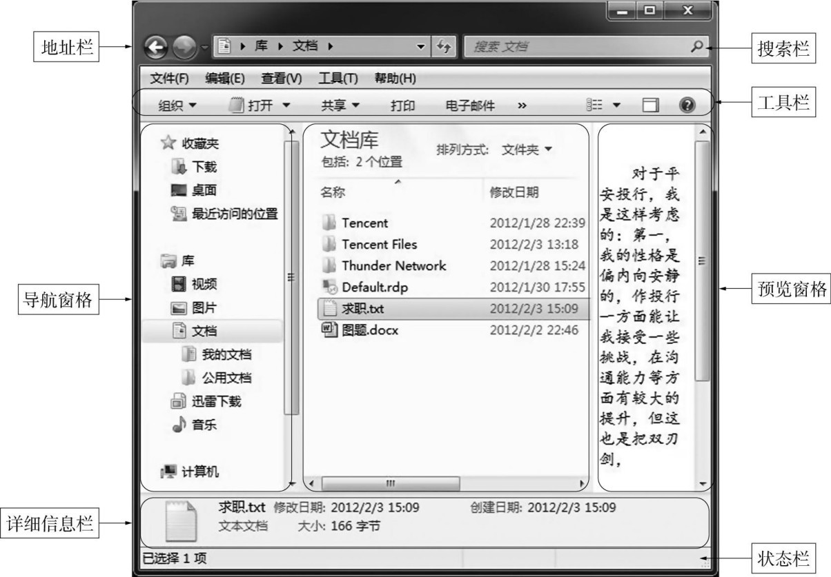 (12)Windows7有四个默认库,分别是视频、图片、_____和音乐。