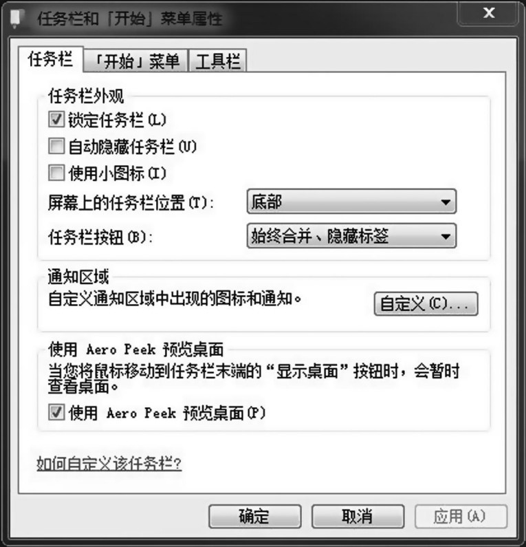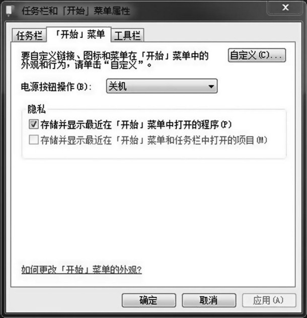 图7.21 “任务栏和[开始]菜单属性”窗口