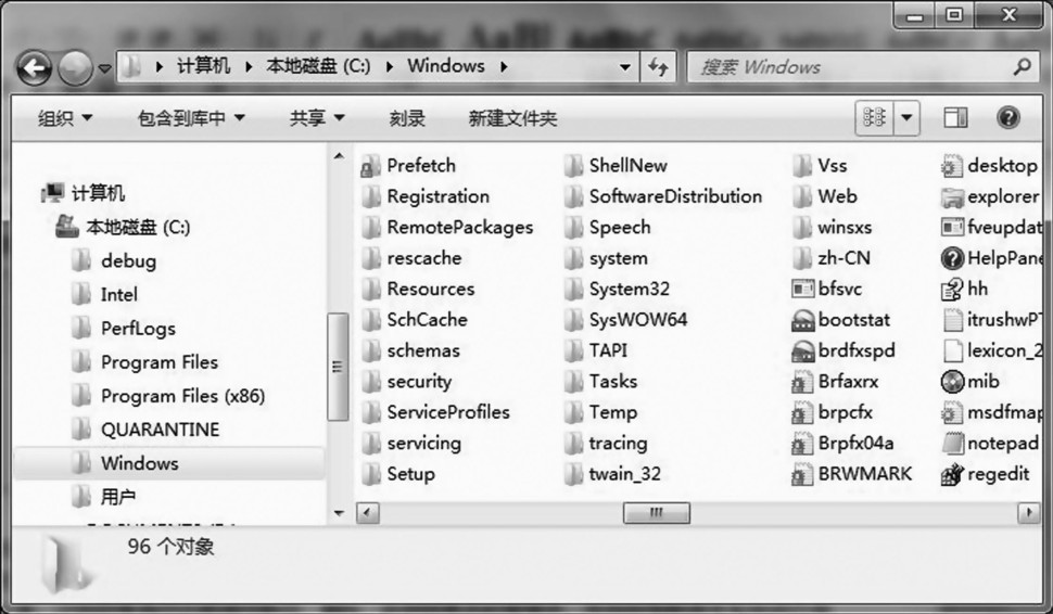 (36)在Windows7资源管理器窗口中,若文件夹图标前面含有实心黑三角符号,表示( )。