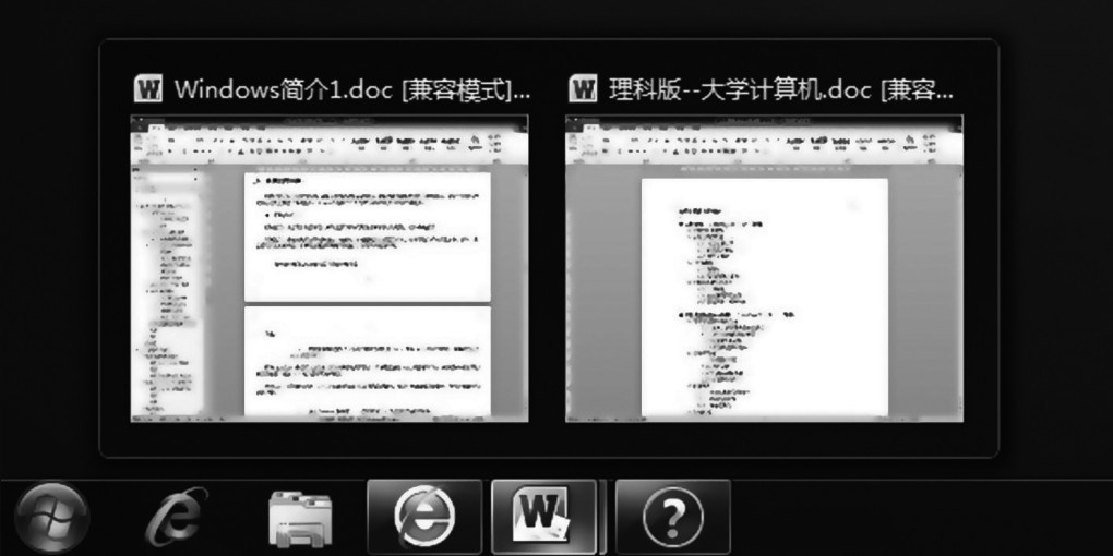 •第2部分即中间部分,显示已打开的程序和文件的图标,单击这些图标可以快速切换当前窗口。