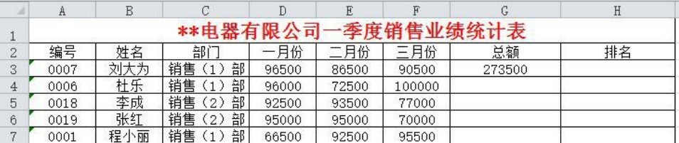 本节通过对9.1小节中“销售业绩统计表”的综合分析来学习Excel2010对表格的综合处理方法,要求计算出每个人的销售总额、销售排名,对销售排名进行排序,设置自动筛选和高级筛选、分类汇总和创建图表。