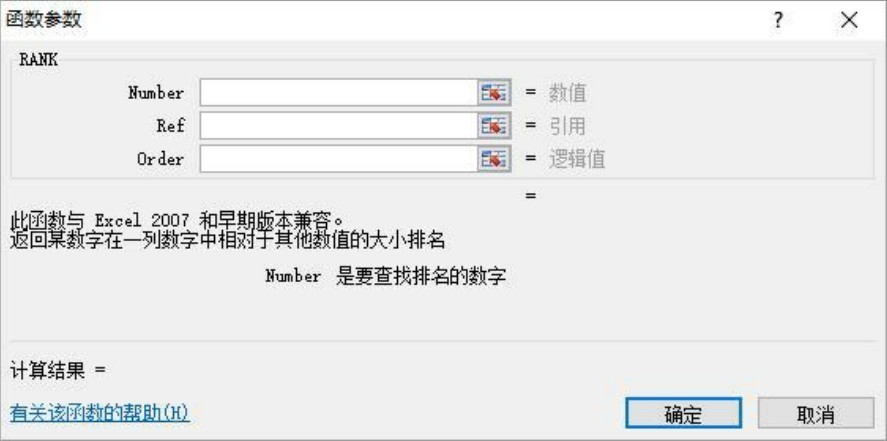 其中,number为待排序的数字;ref为一列数字;order用于指定排位的方式,如果为0或忽略,降序;非零值,升序。