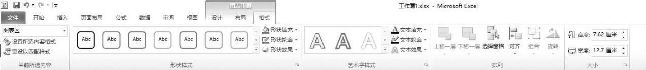 若要设置图表格式,可通过如图9.47所示的“格式”选项卡中的命令设置。