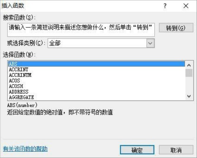步骤3:弹出“插入函数”对话框,如图9.24所示,选择列表设置“全部”。