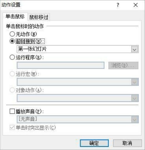 后,鼠标指针将变成形状。 按住鼠标左键,在第五张幻灯片左下角的位置拖动或单击鼠标,将绘制出所选动作按钮并弹出“动作设置”对话框,如图10.38所示。