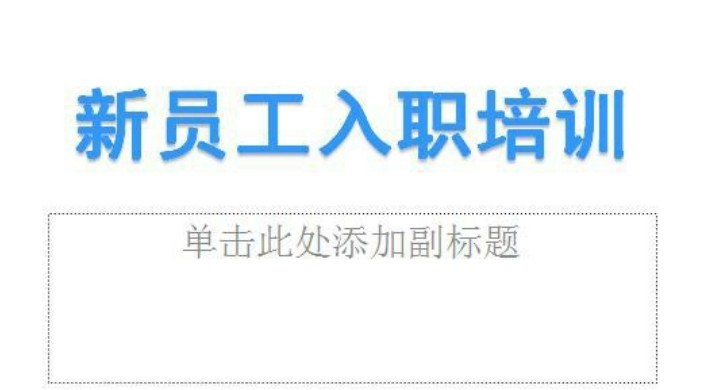 现在添加第一张幻灯片中的文本内容“新员工入职培训”。 在幻灯片中输入文本有两种方式:在占位符中输入和利用文本框添加。 占位符中输入文本的步骤为: