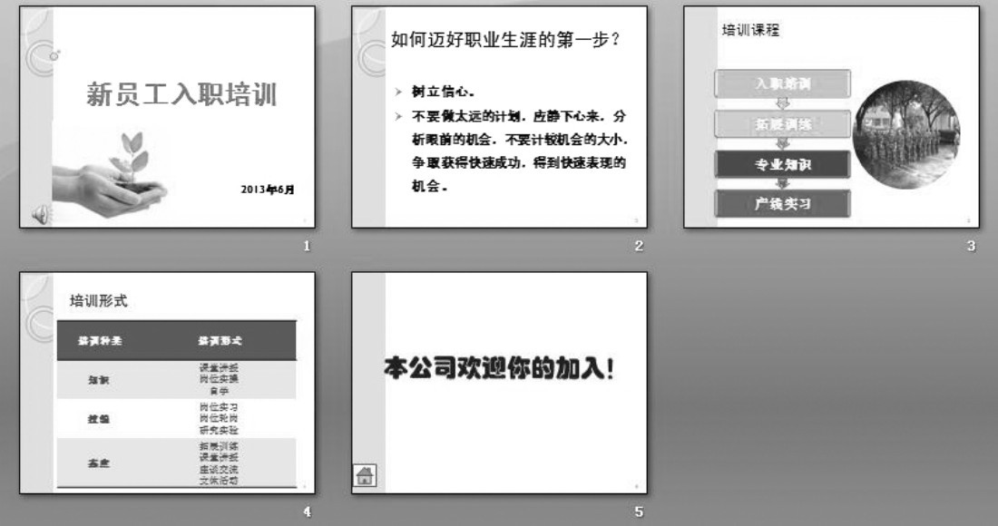 至此,完成了“新员工入职培训幻灯片”的制作。