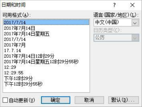 步骤3:在“日期和时间”对话框中选择“2017年7月”格式,然后单击