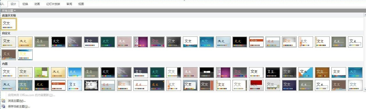 步骤1:单击“设计”选项卡上“主题”组,单击右端的“其他”下拉按钮